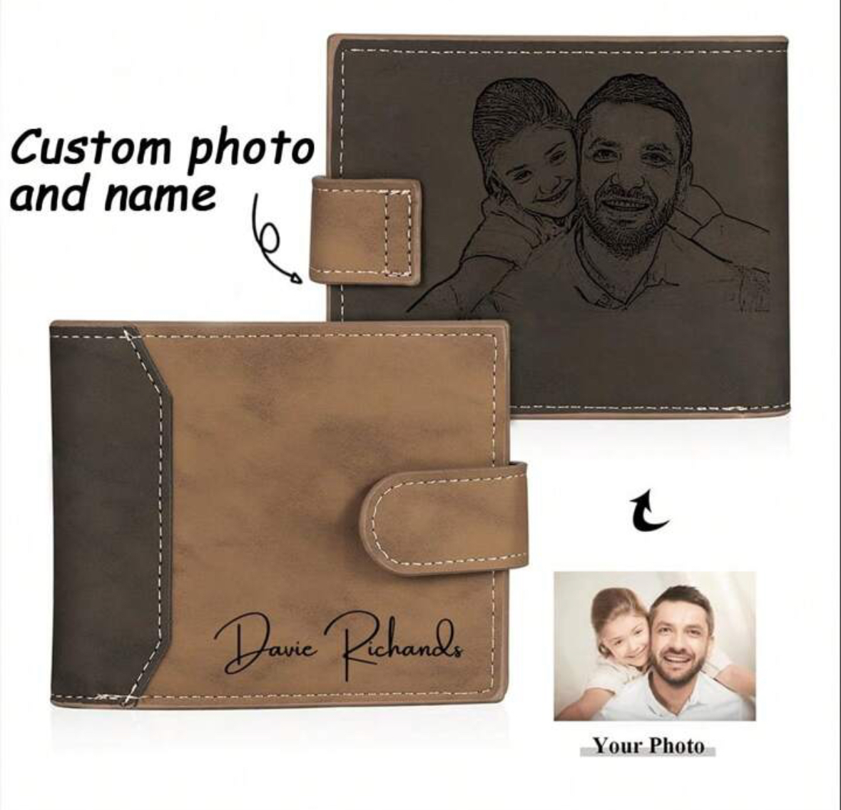 Regala algo práctico y con significado: esta cartera personalizada con foto y nombre combina estilo y emoción. Ideal como regalo para Día del Padre, cumpleaños o aniversarios, es un detalle que siempre se llevará consigo.