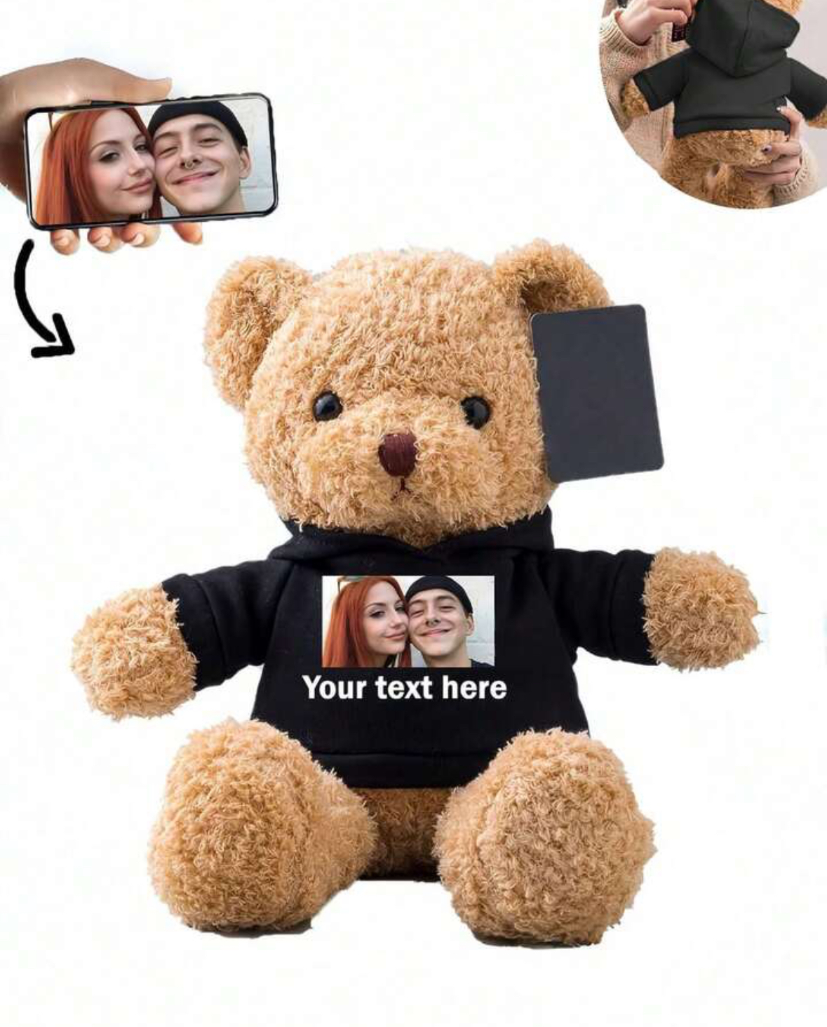 Haz que un detalle dulce sea aún más especial con este osito personalizado con foto y texto. Un adorno adorable que se adapta a tus recuerdos y emociones: perfecto para decorar espacios o regalar en cualquier ocasión especial.